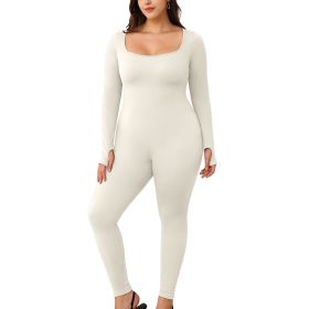 Womens Yoga Jumpsuits Workout Ribbed Long Sleeve Sport Jumpsuits (Color: Beige, size: S)