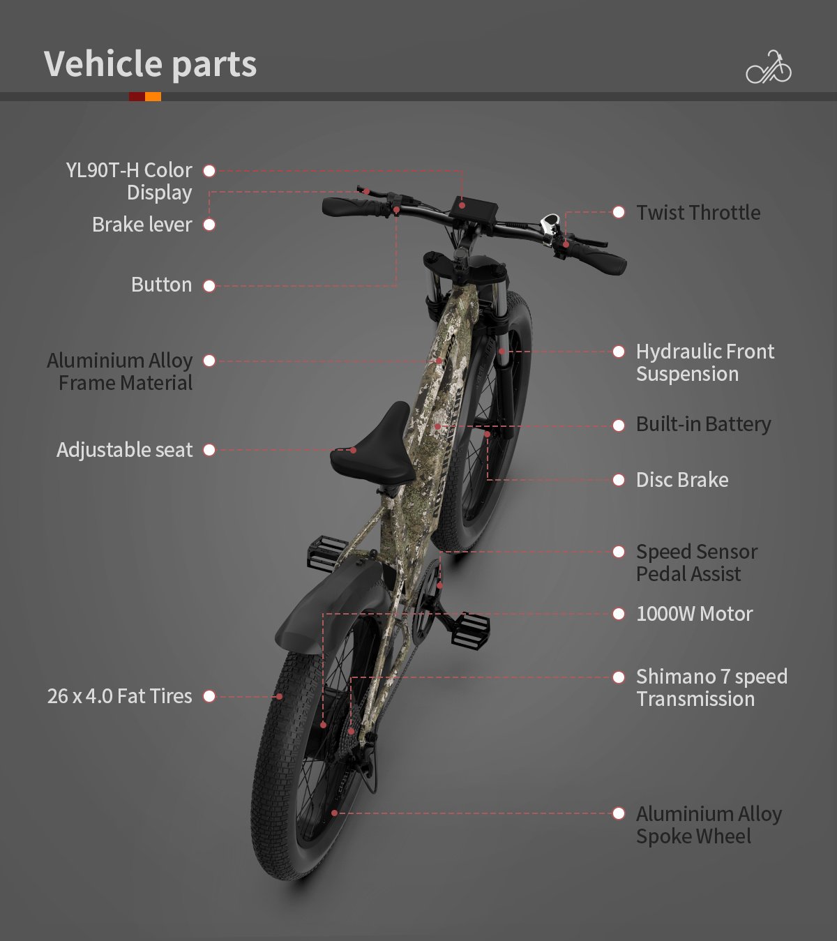 Home > E-bike 26"1000W Electric Bike 52V 20Ah battery SAMSUNG All-terrain EBike Mountain Bicycle(Camouflage)