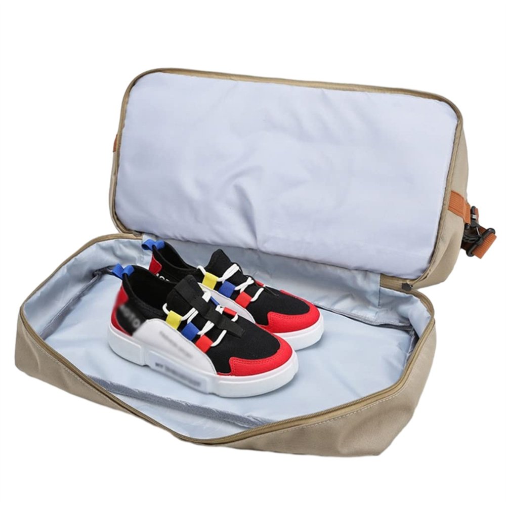 Separate Shoe Compartment: The bottom of the bag features a separate zippered compartment for shoes, keeping them away from your clean clothes and maintaining hygiene.