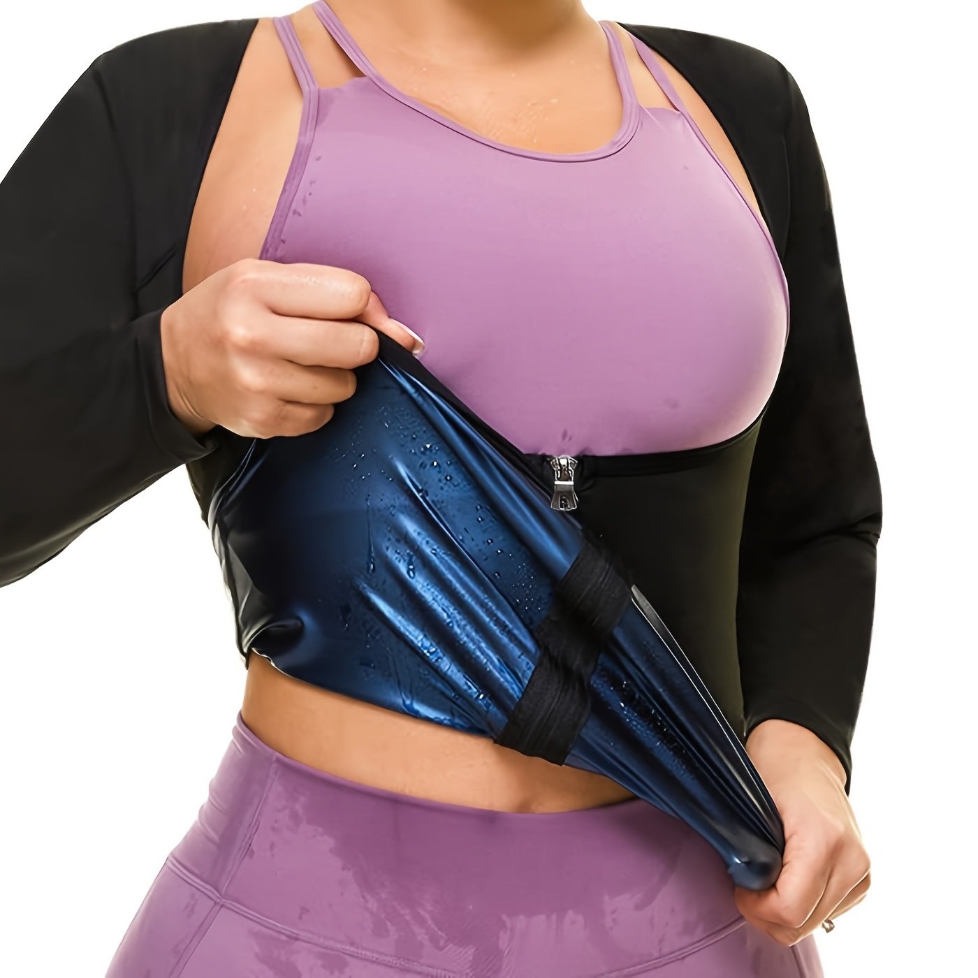 Sauna Suit For Women Sweat Body Shaper Waist Trainer Long Sleeve Zipper Shirt ( Buy A Size Up )