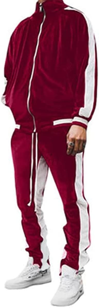 Drawstring closureMATERIAL:Men's 2 Pieces Tracksuits are made of 100% Acetate fiber; bright color and long-lasting color; golden velvet material smooth to the touch; elastic and anti-folding and shrinking.FEATURES:Full Zip; two inclined pockets to keep your hands warm; men's slim jacket. Adjustable drawstring sports pants with pocket for cell phones; cards and cash for everyday travel.OCCASION:It is very suitable for leisure and daily wear; such as men's and teenagers' sportswear; club clothes; running; jogging; gym; party; holiday. It is a birthday gift for husband; father and son.FASHION:Solid color Tracksuit Set is the newest fashion; fashion design make you more charming; vibrant; and attractive.NOTICE:Package included 1x Coats+1x pants in same size. Regarding this men's fashion outdoor sports leisure suit; Please refer to the size chart carefully. If you have any questions before⁡ter sales; please feel free to contact us and we'll try our best to assist you.