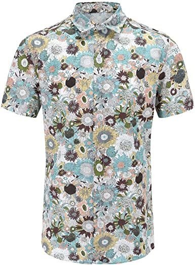 MATERIAL: 100%cotton; Comfortable; skin-friendly; offers you truly comfortable feelingsBotton ClosureDESIGN:This fashion shirt designs in short sleeve; turn down collar; button closure; casual Life; floral printing all Over and Hawaiian style; good choice for All AgesVERSATILE STYLE: You can match a printed shirt with jeans in a classic retro western style; or combine this fashionable shirt with denim for casual everyday wear;OCCASION: Casual short sleeve shirt suitable for summer; suitable for party; song and dance; stage performance or any daily leisure wear.