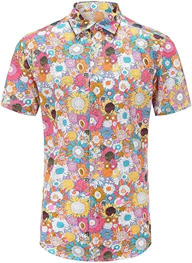 MATERIAL: 100%cotton; Comfortable; skin-friendly; offers you truly comfortable feelingsBotton ClosureDESIGN:This fashion shirt designs in short sleeve; turn down collar; button closure; casual Life; floral printing all Over and Hawaiian style; good choice for All AgesVERSATILE STYLE: You can match a printed shirt with jeans in a classic retro western style; or combine this fashionable shirt with denim for casual everyday wear;OCCASION: Casual short sleeve shirt suitable for summer; suitable for party; song and dance; stage performance or any daily leisure wear.