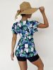Home > Random Print Ruffle Tankini Sets, V Neck Drawstring Tie Front Boxer Short Bottom Two Pieces Swimsuit, Women's Swimwear & Clothing