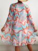 Home > 3-Pieces V Neck Bikini Sets, Drawstring Tie Front Random Print Boxer Short Bottom With Cover Up Shirt Bathing Suit, Women's Swimwear & Clothing