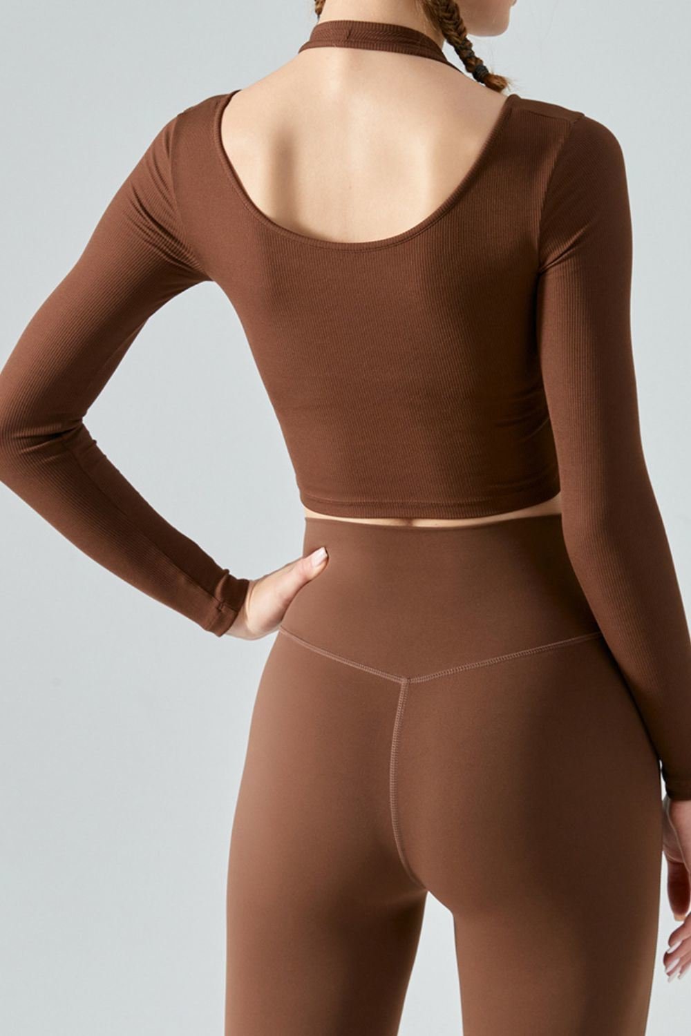 Halter Neck Long Sleeve Cropped Sports Top